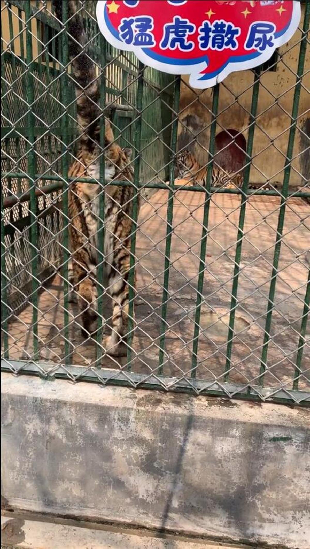 据了解,上述视频拍摄于山东潍坊市金宝乐园动物大世界。工作人员向极目新闻记者介绍,目前他们园区总共有30多只老虎,老虎四处呲尿属于正常生理现象,不仅是视频中那只老虎,其他老虎也会有一样的行为。铁笼外之所以挂了“小心猛虎撒尿”的提示牌,是因为此前也有游客曾被老虎“呲”过尿。
