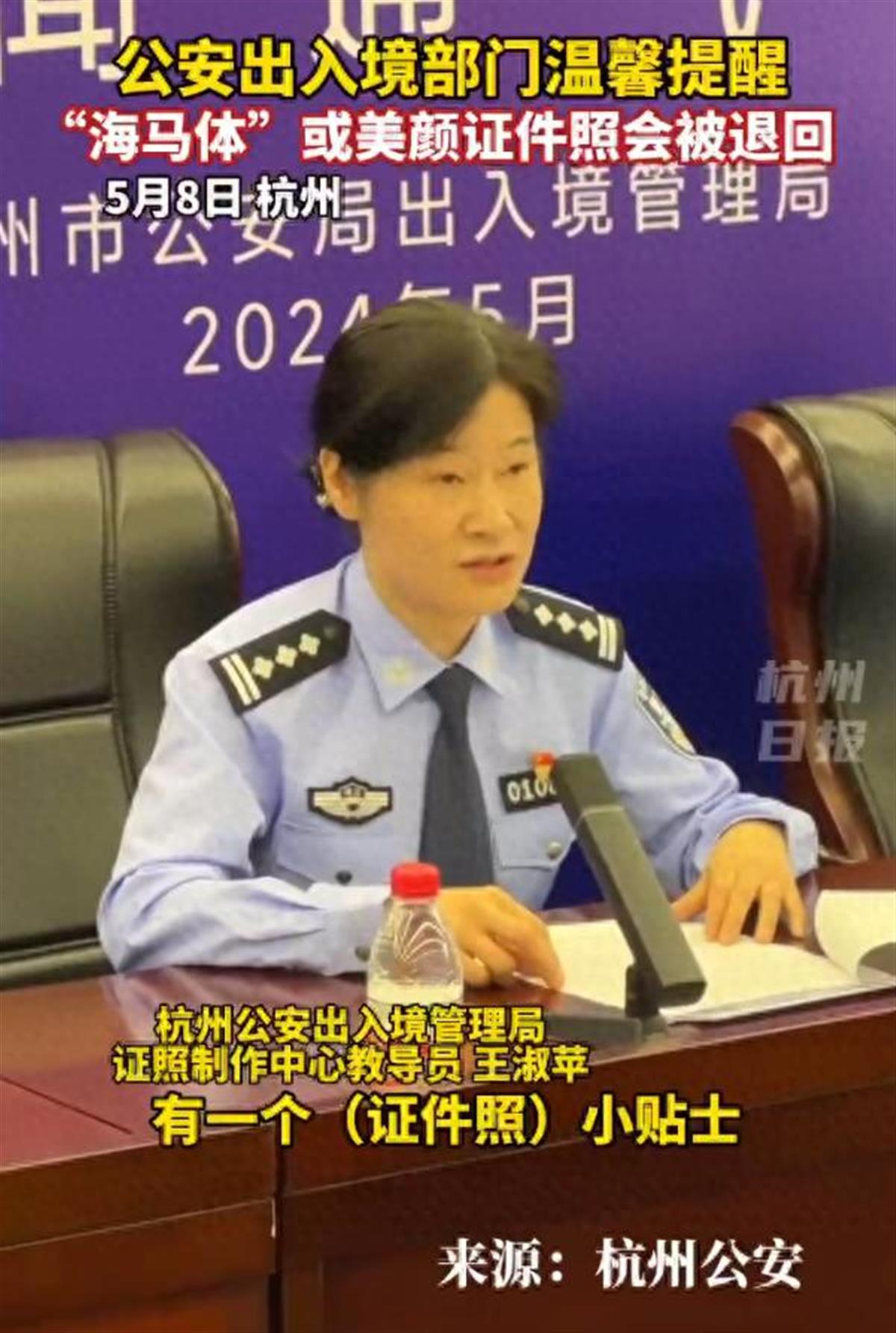 今年5月6日起,杭州作为全国20个试点城市之一,实施中华人民共和国普通护照、往来港澳通行证、往来台湾通行证换发补发“全程网办”,即年满16周岁的杭州市户籍居民,曾经申领过上述任何一种出入境证件且证件仍在有效期内的,可通过国家移民管理局政务服务平台进行网上申请办理。当时,杭州公安温馨提醒广大市民,办理出入境证件时,“海马体”或者经过其他美颜工具P图的照片,在审核质检环节不能通过会被回退,所以请大家按照要求上传符合标准的制证照片、手写签名以及本人居民身份证正反面照片。