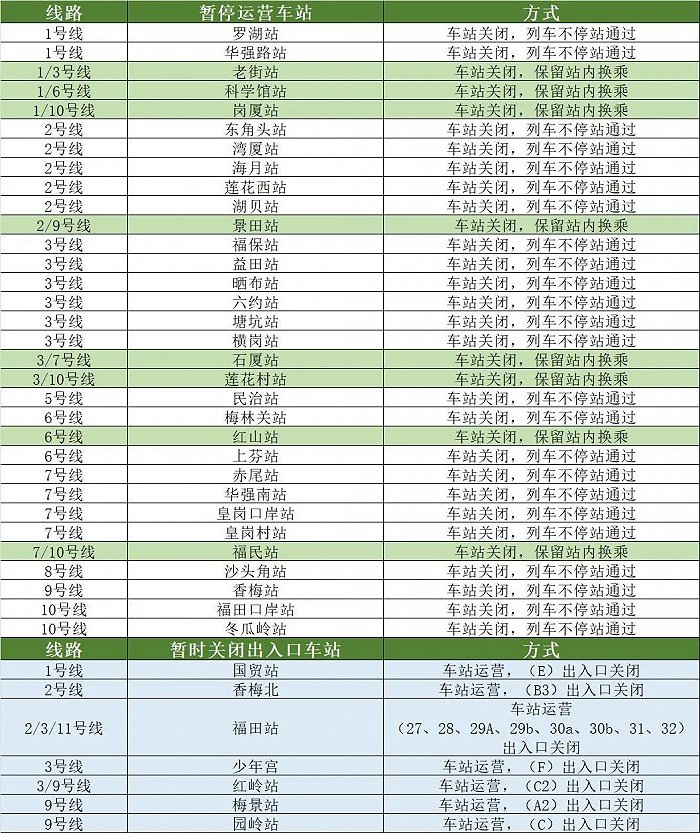 自2022年9月5日起,深圳地铁各线正常运营,同时根据疫情防控需要,部分车站(出入口)将暂停服务(关闭)。
