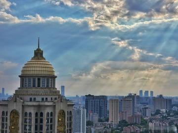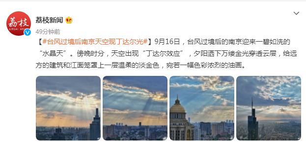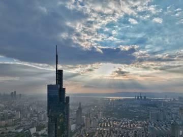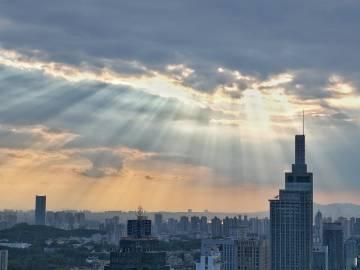 9月16日,台风过境后的南京迎来一碧如洗的“水晶天”。傍晚时分,天空出现“丁达尔效应”,夕阳洒下万缕金光穿透云层,给远方的建筑和江面笼罩上一层温柔的淡金色,宛若一幅色彩浓烈的油画。
