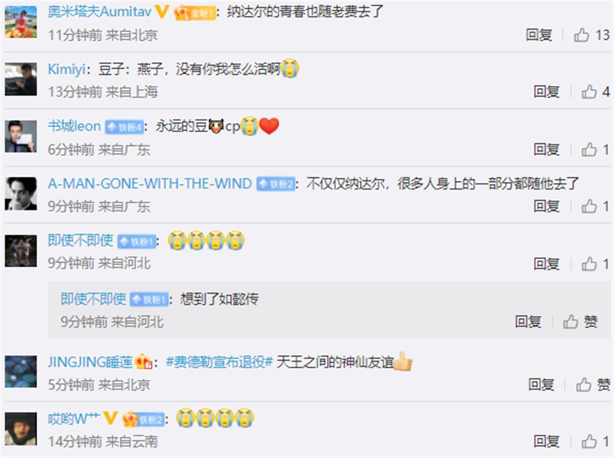 北京时间9月24日清晨,网球天王罗杰·费德勒完成职业生涯的后最一场比赛,正式退役。在告别时刻,41岁的费德勒激动落泪,一直在他身边的纳达尔也哭了起来。