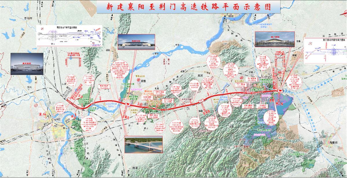 据介绍,呼南高铁襄阳至荆门段自襄阳东站引出,向南经宜城至沪渝蓉沿江高铁荆门西站,新建线路长116公里,设计时速350公里/小时。全线设襄阳东、宜城北、双河西(越行站)、荆门西站等4座车站。其中,襄阳东为既有车站,宜城北、双河西(预留客运条件)为新建站,荆门西为在建车站。