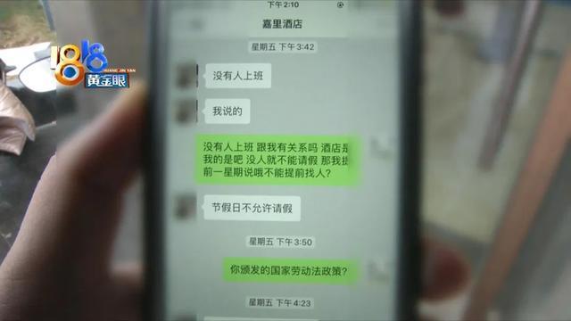 小倪说,“没有人上班,跟我有关系吗,酒店是我的,是吧” 老板说,“节假日不允许请假”,小倪说,“你颁发的国家劳动法政策?”