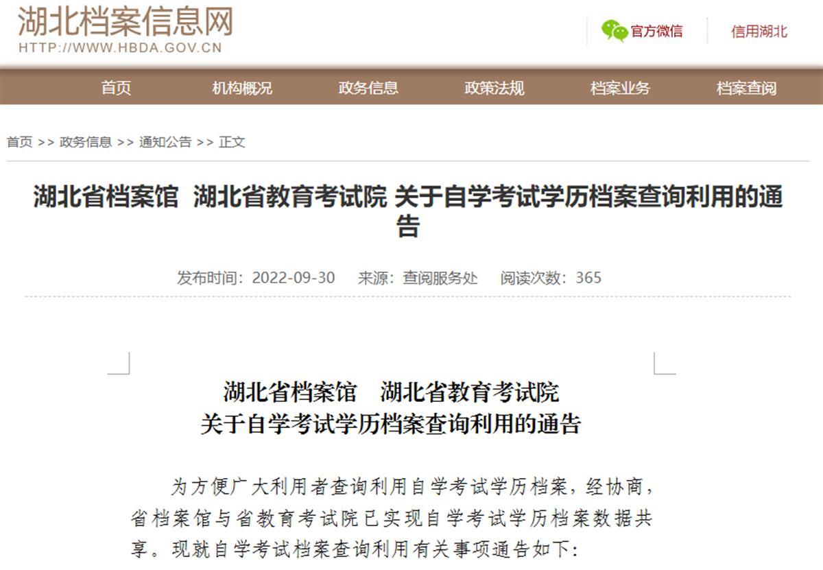 同时,《通告》介绍,2014年(含)以后的自学考试档案,不在湖北省档案馆保存。利用者如需查询,可咨询毕业学校。
