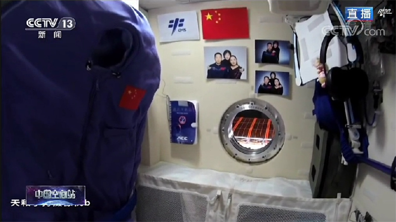 再往前飞,便是问天实验舱的生活区,这里有太空厨房设备、"健身房"、卫生间等。太空厨房的配置和核心舱基本相同,“健身房"则摆放了从核心舱转移来的太空自行车。