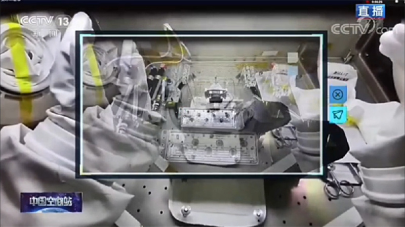 今年9月,航天员与地面课堂的同学们一起浇水播种了拟南芥。在这次课堂上,航天员首次在科学手套箱中演示了科学实验操作——采集拟南芥样本。