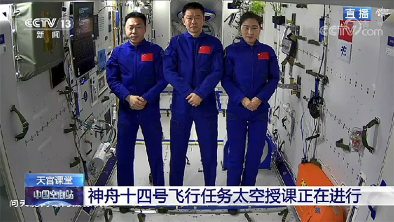10月12日,“天宫课堂”第三课如约开讲。“太空出差三人组”陈冬、刘洋、蔡旭哲在中国空间站问天实验舱内,给青少年们授课。授课采用天地对话的方式进行,除了北京的地面主课堂,河南郑州、山东菏泽、云南大理也设置了地面分课堂。