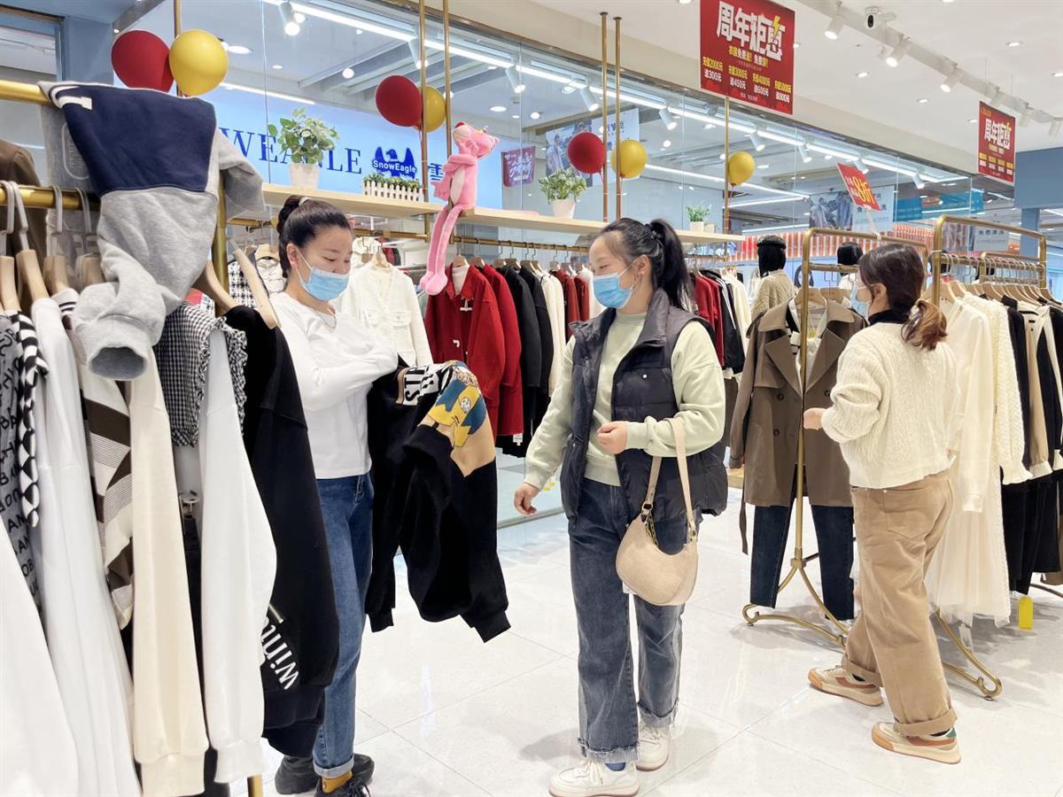 一楼优韩女装店主营日韩女装,从国庆假期开始,平均每天要接待近30批采购人群。老板吴伟龙介绍,今年秋冬流行时髦叠穿法,羊绒大衣搭配基础高领衫,羊羔毛叠穿羽绒马甲,不仅有层次感,还显得轻巧灵动,满足年轻人“保暖+时髦”两不误的需求。店里近期同步推出新款大促、充值有礼等促销活动,吸引诸多消费者成套购买。
