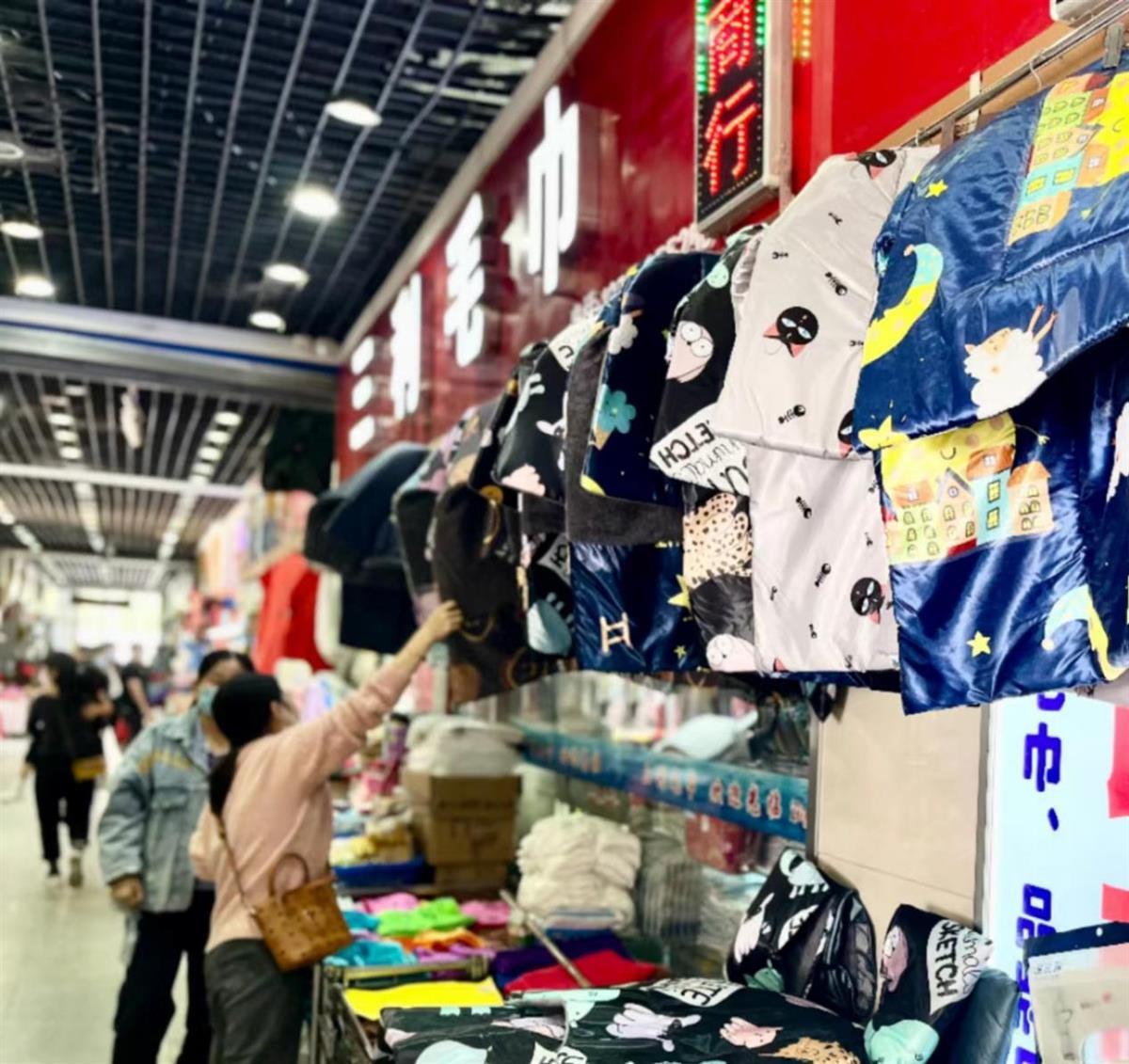冷空气之下,小商品城也孕育了一个大市场,市民纷纷开始购买御寒物品。不少商家把鸭绒被、电暖宝、手套、帽子、保温杯、加绒拖鞋等保暖用品焕新,IP联名的卡通手套、围脖等产品设计亮眼,占据较大销售份额。