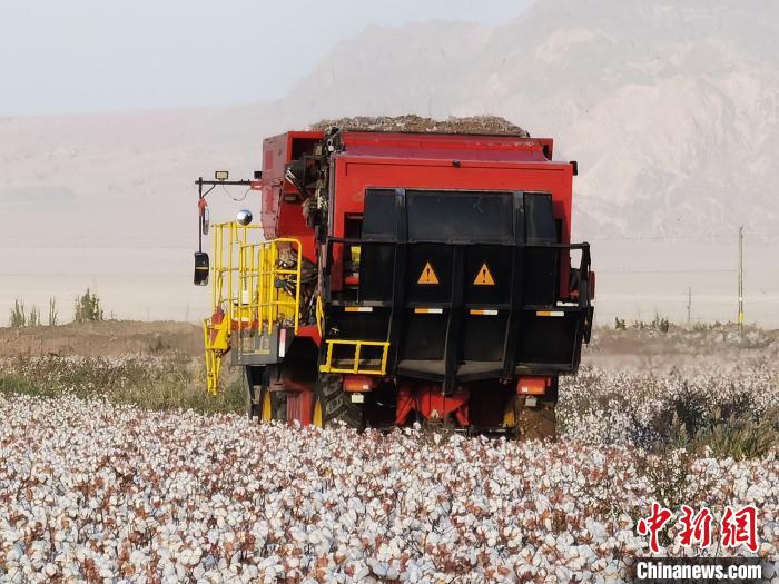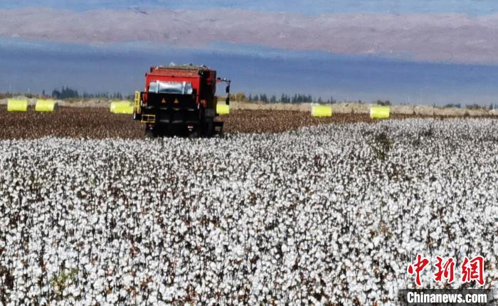 “我们村里今年种植棉花有5.2万亩,现在每天有13台采棉机正常作业采棉,每台采棉机每天可以完成采棉400亩左右,采摘后由村委会统一协调运输车辆进行运输,确保完成棉花采收和销售,预计下个月初我们库米什镇的棉花就全部采收完成。”库米什镇党委委员尼加提·肉苏力介绍。