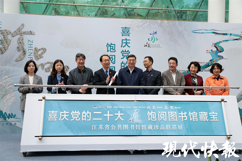 现代快报讯江苏13市晒古籍“全家福”!10月20日,“喜庆党的二十大·饱阅图书馆藏宝”——江苏省公共图书馆馆藏珍品联巡展开幕式在南京图书馆举办。