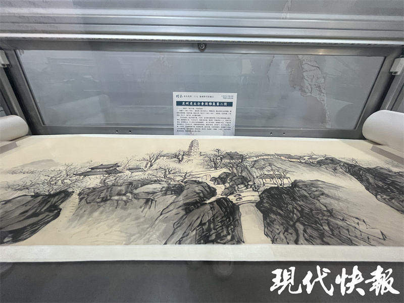 苏州图书馆的《苏州虎丘冷香阁雅集第二图》是1936年绘本,作者是著名画家张善子、张大千。横卷轴展开,冷香阁、剑池石梁、云岩寺塔等虎丘诸景跃然纸上。