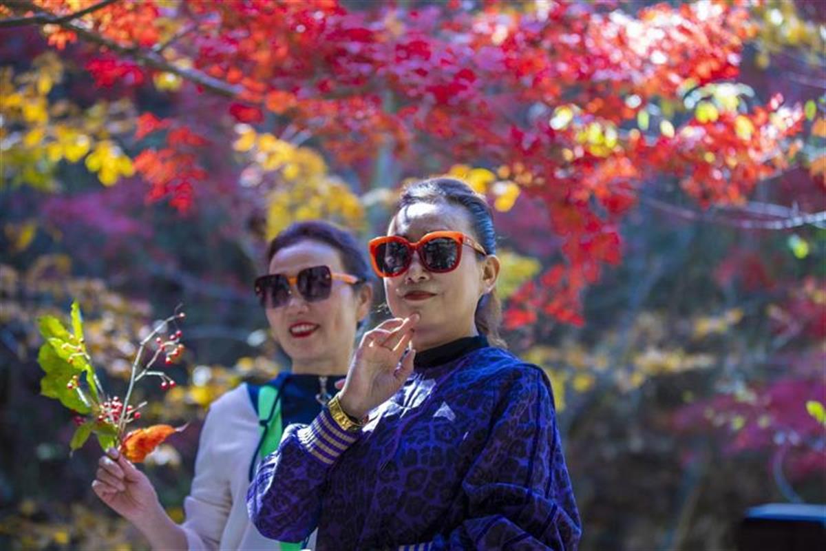 “山林中漫步,脚下是片片红叶,呼吸着清新的空气,能感受到大自然的美好。”黄石游客蒋女士说。