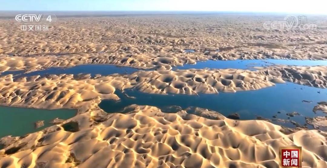 塔克拉玛干沙漠出现众多“湖泊” 图源:央视网