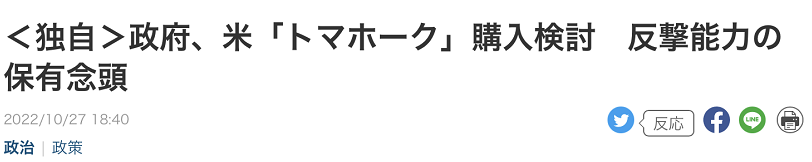 在《产经新闻》发布独家报道后,日本广播协会、《日本经济新闻》等多家日媒28日也发布了类似的报道,声称“日本政府正考虑购买美‘战斧’导弹”。《读卖新闻》则更进一步,该媒体援引日本政府知情人士的话声称,就购买“战斧”导弹一事,日本政府已经通过谈判试探美方的意愿,美方对出售导弹表现出积极态度,谈判已经进入最后阶段。报道还称,8月出任防卫相的滨田靖一决定引进“战斧”导弹,并开始推进与美国的谈判。