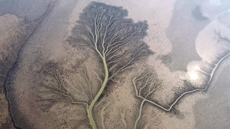 黄河入海口周边海滩由于潮汐之力形成的潮汐树,这些“生命之树”形状各异,栩栩如生。新华网发(杨斌摄)