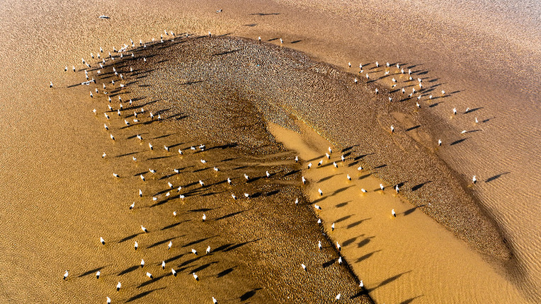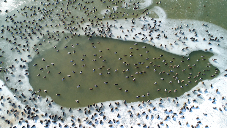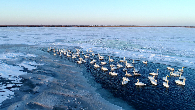 鸟儿在山东黄河三角洲国家级自然保护区越冬。新华网发(杨斌摄)