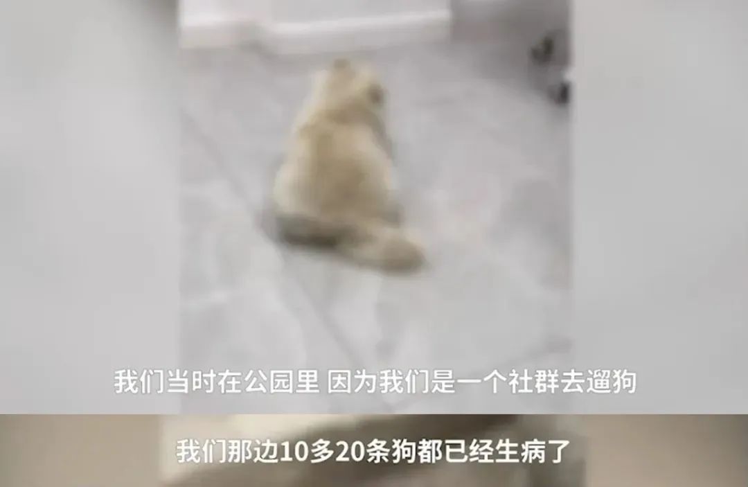 宠物主人小谢(化名)表示,和自己的狗狗一起出现中毒症状的有十余条狗。月初,他们相约公园遛狗后,狗狗们集体出现抽搐、口吐白沫的症状。事发后,他们在遛狗群中交流了相关情况。