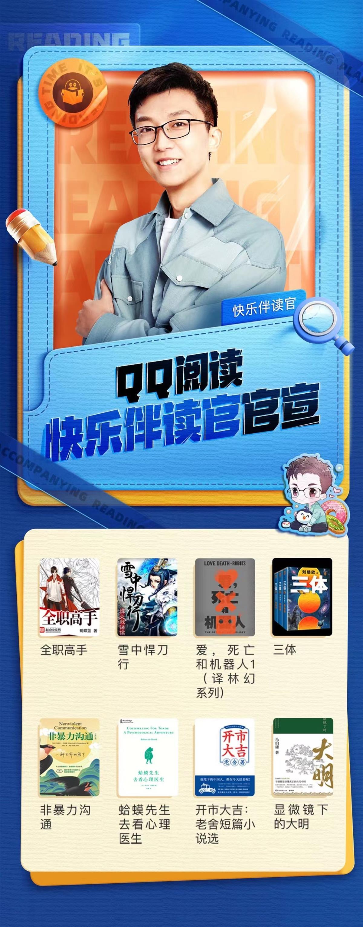 据悉,自2010年上线至今已有12年时间的QQ阅读正逐步汇集海量网络文学作品以及传统出版物电子版,囊括文学、社科、教育、时尚、科技等类别书籍之外还有漫画、听书等多样化阅读形式。孟川与鸟鸟此次担任“快乐伴读官”,推荐的书籍皆为各流派文学佳作,具有极强的可读性。