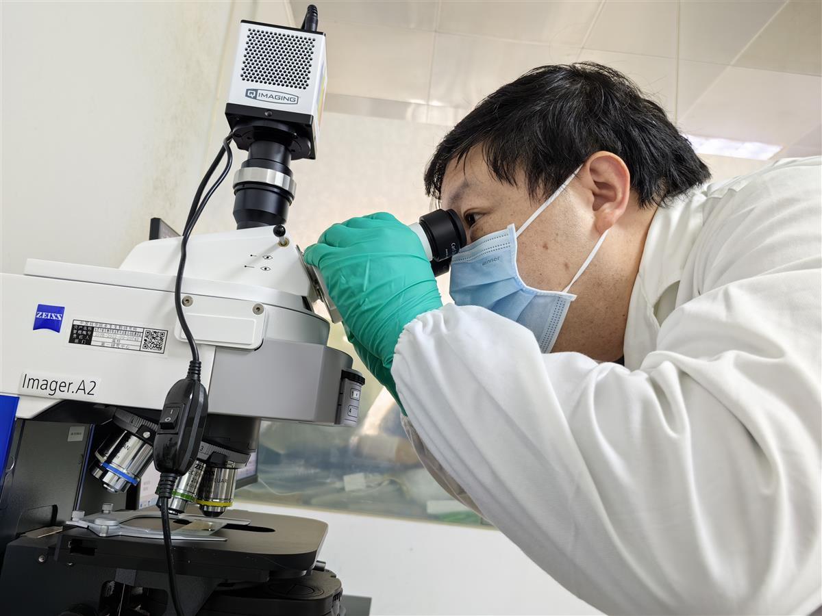 高欣正在利用显微镜观测淡水鱼类的耳石样本