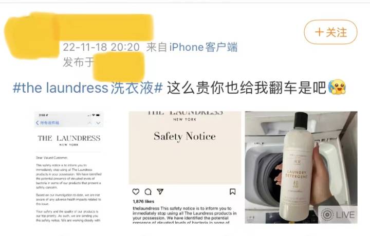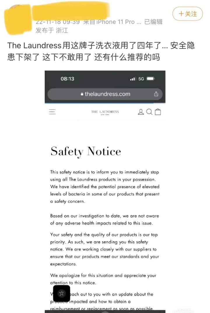 据网友爆料,来自美国的衣物护理品牌THELAUNDRESS官宣了一则声明:建议用户立即停止使用品牌旗下产品,原因是“可能微生物超标”。