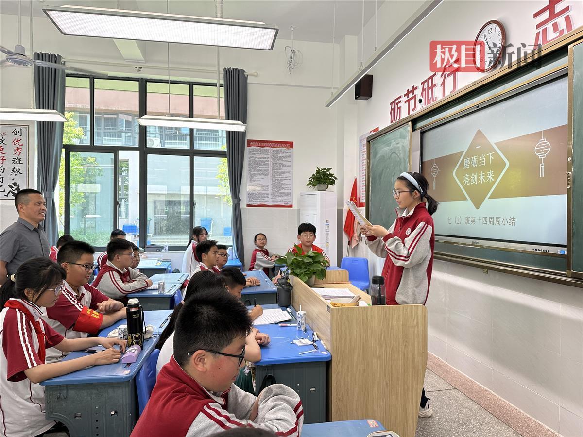 学生在班会课上进行周小结