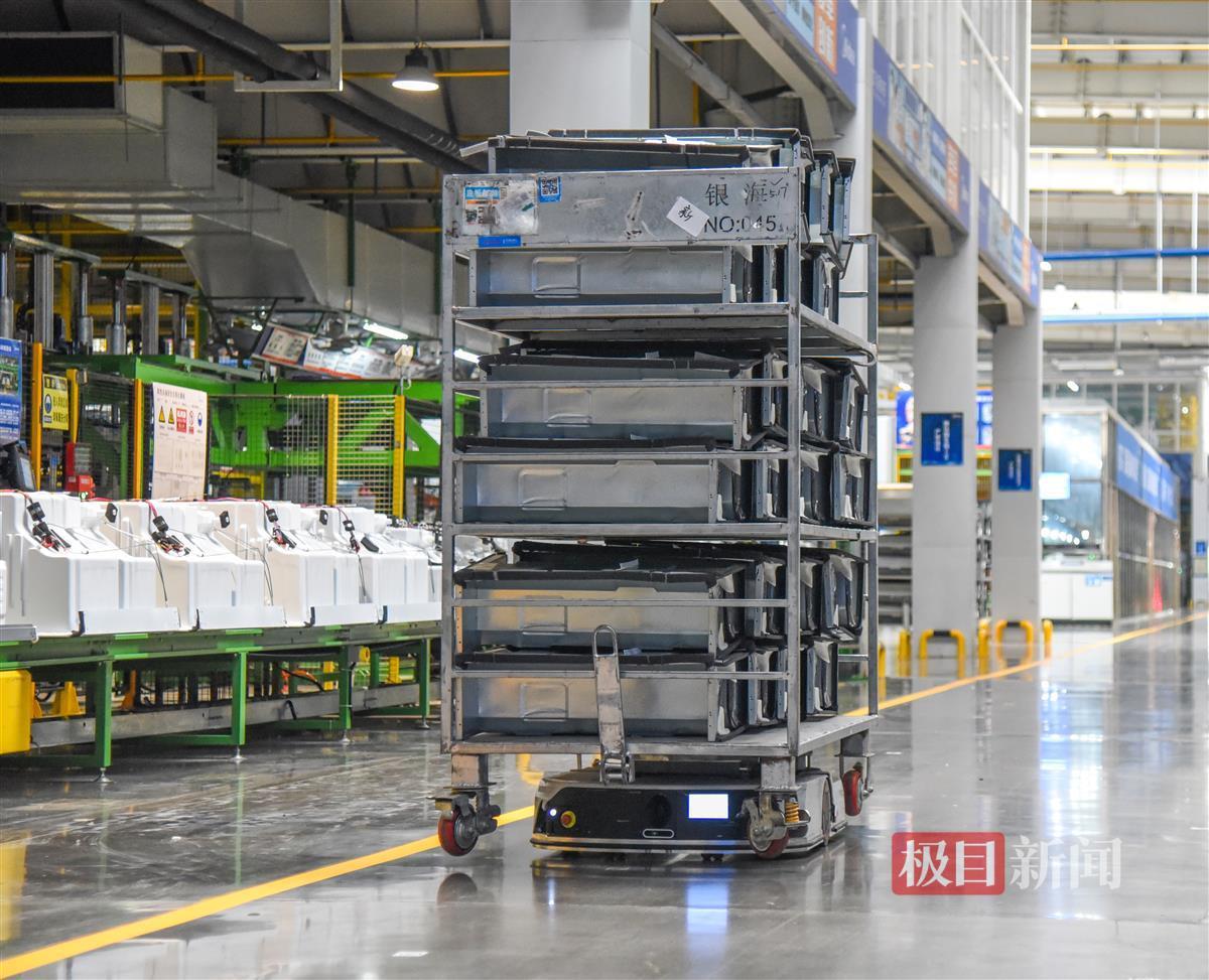 7月4日,在美的冰箱荆州工厂,AGV小车正载着货物自动行驶 (极目新闻记者黄志刚摄)
