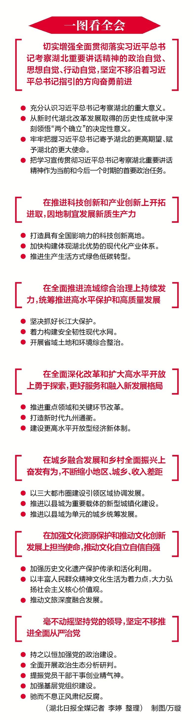 省委全会从7个方面作出部署,系统提出贯彻落实习近平总书记考察湖北重要讲话精神的重点任务和工作举措。