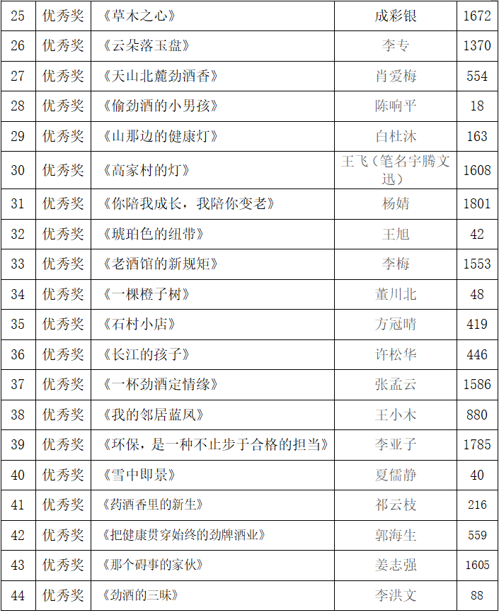 经过中国散文学会等专家评审团的初评、复审、终评、合议四轮评选,最终确定44篇短故事获奖作品,其中一等奖1名、二等奖3名、三等奖10名、优秀奖30名;以及34篇短视频获奖作品,其中一等奖1名、二等奖3名、三等奖10名、优秀奖20名。(详细作品见下文)