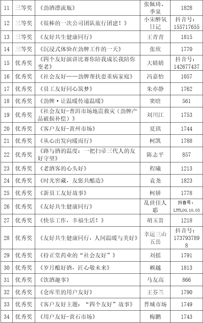 千年文明,友好共生;时代新章,健康同行。今年5月9日,劲牌杯“友好共生 健康同行”短故事/视频征集大赛正式启航,经过三个月的火热征集,于8月9日截止收官。大赛共收到投稿近2000篇,其中通过审核已展示的短故事作品1627篇、短视频作品143条,抖音话题共创79条。