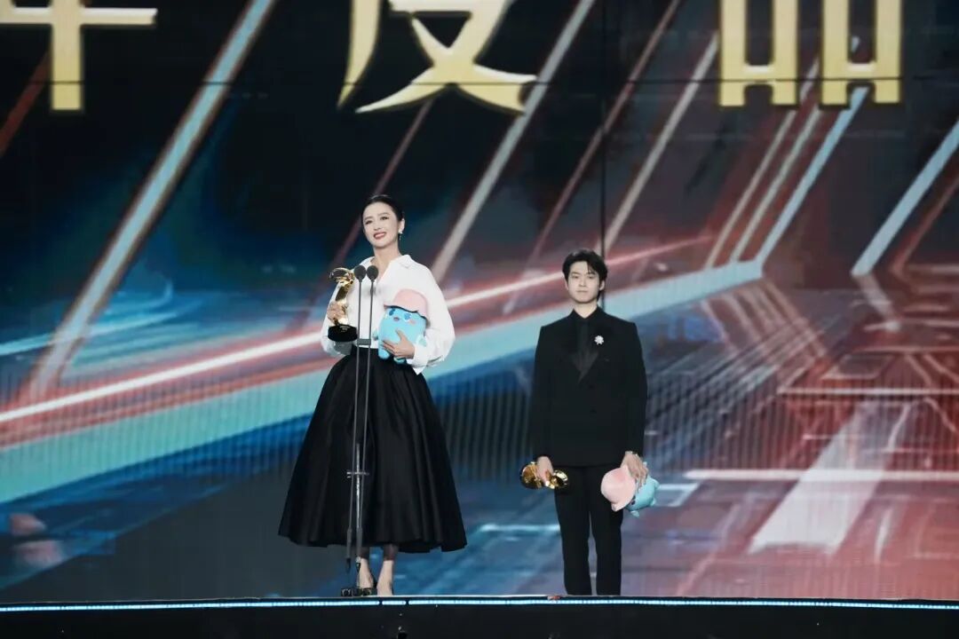凭借超人气电影《好东西》获得金鸡奖最佳女配角提名的钟楚曦,在今晚的荣誉之夜收获了年度口碑女演员大奖。这份荣誉,对于这几天深陷“抢C位”风波的她来说,无疑是一份无比及时的业务肯定。