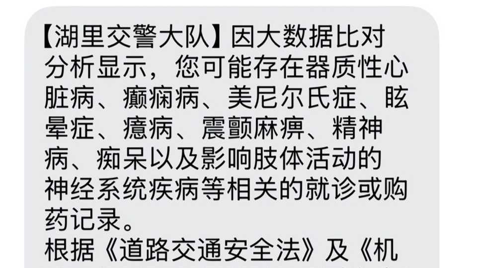 就诊购药记录被大数据筛查,“买过助眠药”的网友称收到注销驾照短信,交警:系提醒,建议到场核实极目新闻 昨日 -