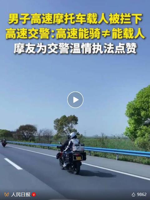 高速公路上能骑≠能载人,湖北交警温情执法,摩友点赞!极目新闻 昨日 -