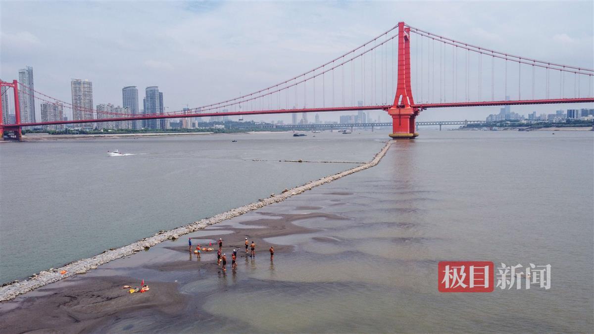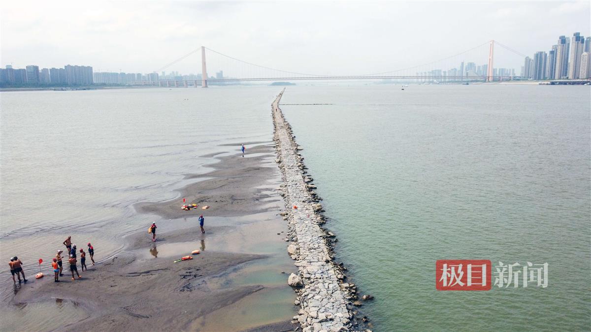 家住武汉汉阳的一位年近七旬的游泳爱好者告诉记者,他自小在湖边长大,热爱游泳,但由于身体原因无法适应冬泳。往年看着冬泳爱好者游到江心这个位置,他们羡慕得不得了。“今年夏天出现罕见的枯水位,水温也不冷,所以他也特地游过来看一看,玩一玩。