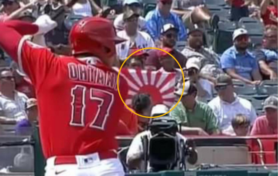 报道称,今年8月,在美国职业棒球大联盟洛杉矶天使队主场对阵德克萨斯骑警队的一场比赛中,一名洛杉矶天使队的球迷在该队日籍选手大谷翔平上场时,手举“旭日旗”为其加油助威。这一幕正好出现在比赛转播镜头的画面中,因此被网民截图并进行举报。