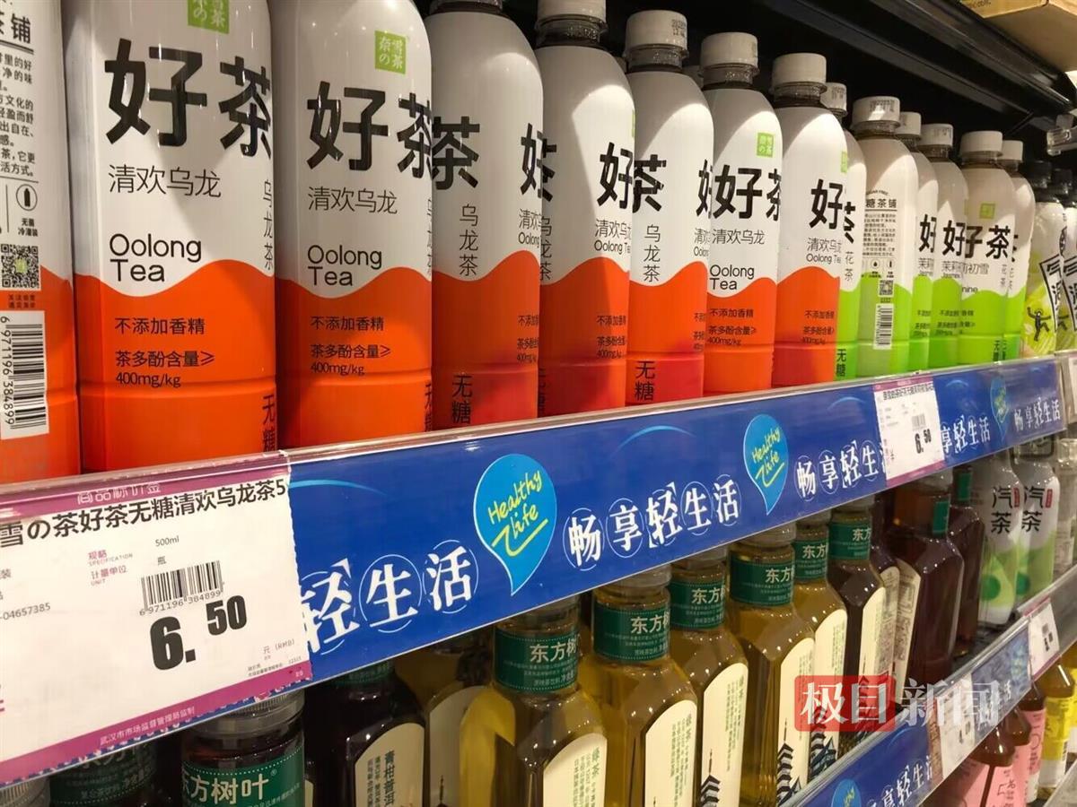 9月1日,汉口后湖大道一家连锁超市的饮料区里,两名年轻女生为选择哪一款茶饮料纠结不已。