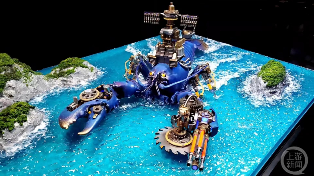在“黑猫”展示的模型中,可以看到很多的细节,比如给“蟹尔曼坦克”加上开炮的特效;“海龙级战列舰”右边钳子可以夹人,左边钳子变成了旋转的电锯,龙虾背上还有齿轮在转动……“黑猫”表示这些细节都是一步步摸索出来的:“我没有学过机械专业,也没学过动物解剖学,所以每个细节都是自学加上摸索,视频里的镜头很美,可这可能是失败很多次,总结教训后完成的成果。”