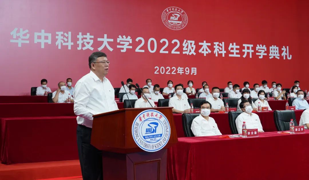 亲爱的2022级同学们,尊敬的老师们、来宾朋友们:大家上午好!清秋时节,金桂飘香。美丽的华科大又迎来了7230名新主人。风景如画的喻园,因你们的到来增添了新的活力。在此,我代表全校师生员工,向你们表示热烈的欢迎!向伴随你们一路成长、拼搏的父母、老师和朋友们表示诚挚的问候!向承担我校军训任务的陆军工程大学军械士官学校的领导和教官们,致以衷心的感谢!“十年磨一剑、一朝试锋芒。”同学们克服疫情困难,决胜高考大关,交出了不负青春梦想的满意答卷。你们当中,有120名同学,入选“强基计划”,立志服务国家重大战略需求;有5对双胞胎同学,齐头并进携手同行,一起选择华科大;你们当中,有来自湖北鄂州的郭俊峰、襄阳的张汇炎同学,自强不息勤学奋进,用青春奋斗谱写励志故事;有来自湖北武汉的蔡沐晗、刘家乐同学,投身抗疫一线,助力疫情防控。你们用实际行动证明,新时代的青年是可爱、可信、可为的一代。我相信,你们将在华科大校园里放飞青春梦想,成为更好的自己!再过20多天,华科大将迎来70周年校庆,同学们将一同见证华科大70年的光荣与梦想。在这里,我也十分高兴能和大家一起认识华科大、融入华科大、筑梦华科大。学校在新中国的朝阳中诞生,在共和国的旗帜下成长,在改革开放中腾飞,在新时代迈向世界一流,被誉为“新中国高等教育发展的缩影”。