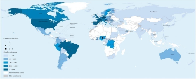 1970年在刚果确诊首例猴痘病例,目前认为,非洲的中部和西部地区为猴痘地方性流行地区,而且,病例主要分布在非洲中、西部热带雨林地带。 在非洲以外地区的非地方性流行地区,既往发生的猴痘疫情较少,且本地传播有限,且绝大多数都有非洲地区旅居史。但从2022年5月开始,截至9月14日,全球103个国家/地区共报告猴痘确诊病例59147。