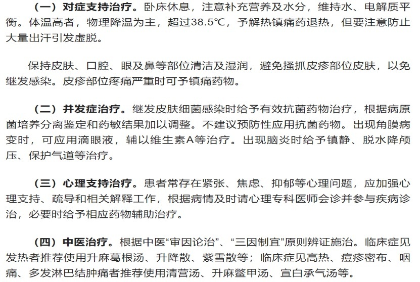 目前国内尚无特异性抗猴痘病毒药物,主要是对症支持和并发症的治疗。