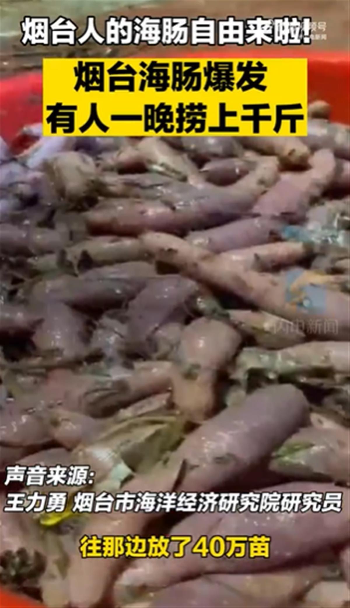 可见,海鲜又并非大风吹来的,是自然环境变好后,有适合生长的水域,才有海货可捡。烟台市海洋经济研究院研究员王力勇表示,2016年投放40万苗后,因为环境本身创造了比较好的水质和品种的自然量增加,“(大量海肠)属于正常现象”。