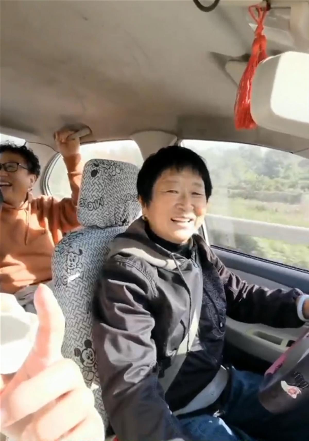 车内的驾驶位上,王云秋一手握着方向盘,另一只手自如地换挡,窗外的树木快速往后移动。坐在副驾驶位的女儿郭程程提醒老太太开慢点,老太太还笑着说,“没什么,这不很正常吗?”