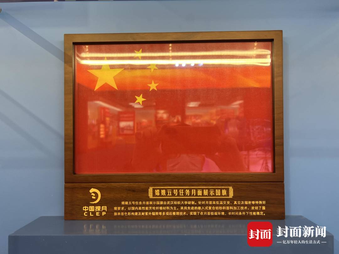 在成就展上,有一面特殊的国旗曾经历过“太空旅行”,这就是嫦娥五号任务月面展示国旗。嫦娥五号任务是中国探月工程的第六次任务,也是中国航天最复杂、难度最大的任务之一,实现了中国首次月球无人采样返回。