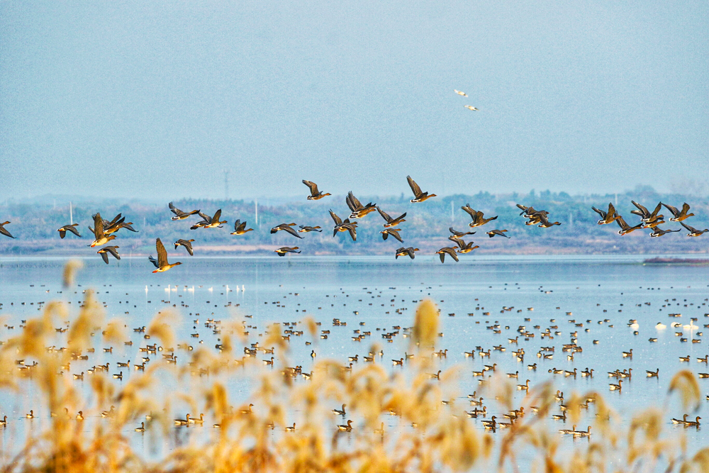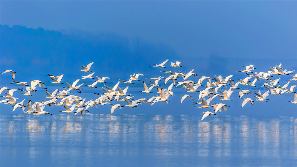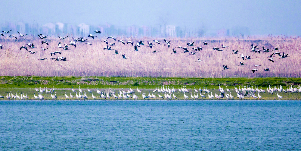 安山国家湿地公园候鸟翔集。新华网发