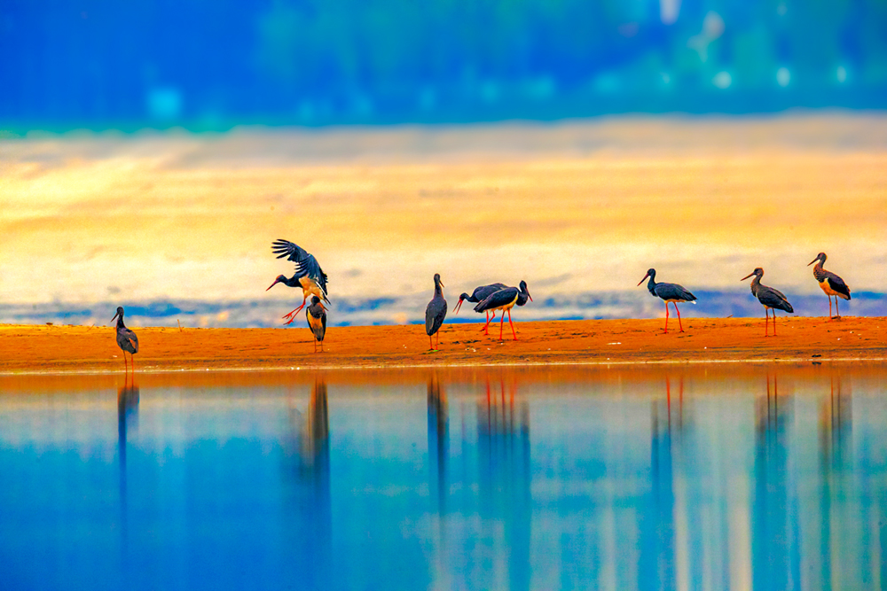 水鸟翩翩起舞