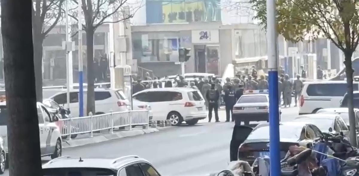 事发时现场有大量警察围住银行(图源:视频截图)