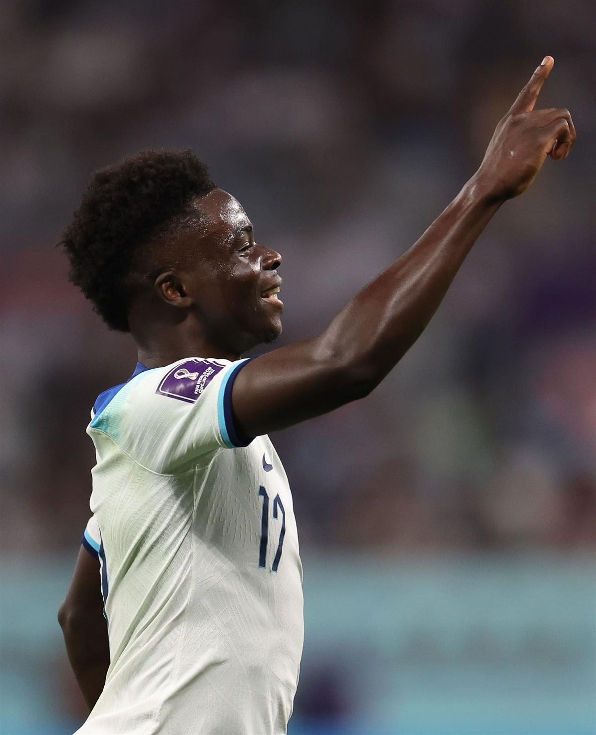下半场开始后,在第62分钟,萨卡梅开二度,为英格兰队打入第四个球。首次参加世界杯就在首场比赛中独中两元,让萨卡喜笑颜开。