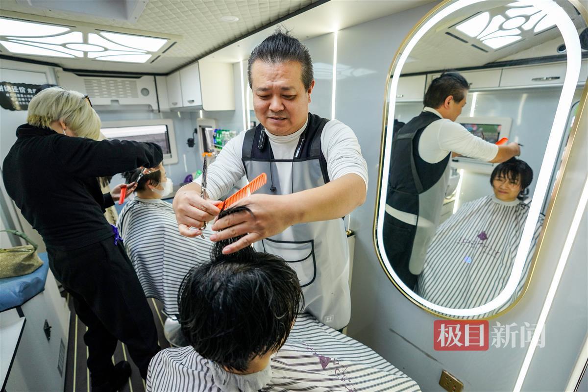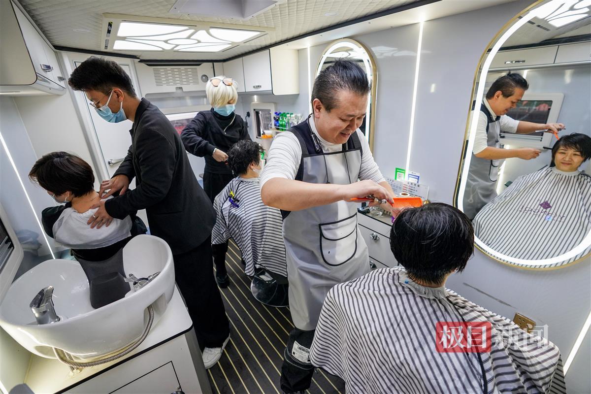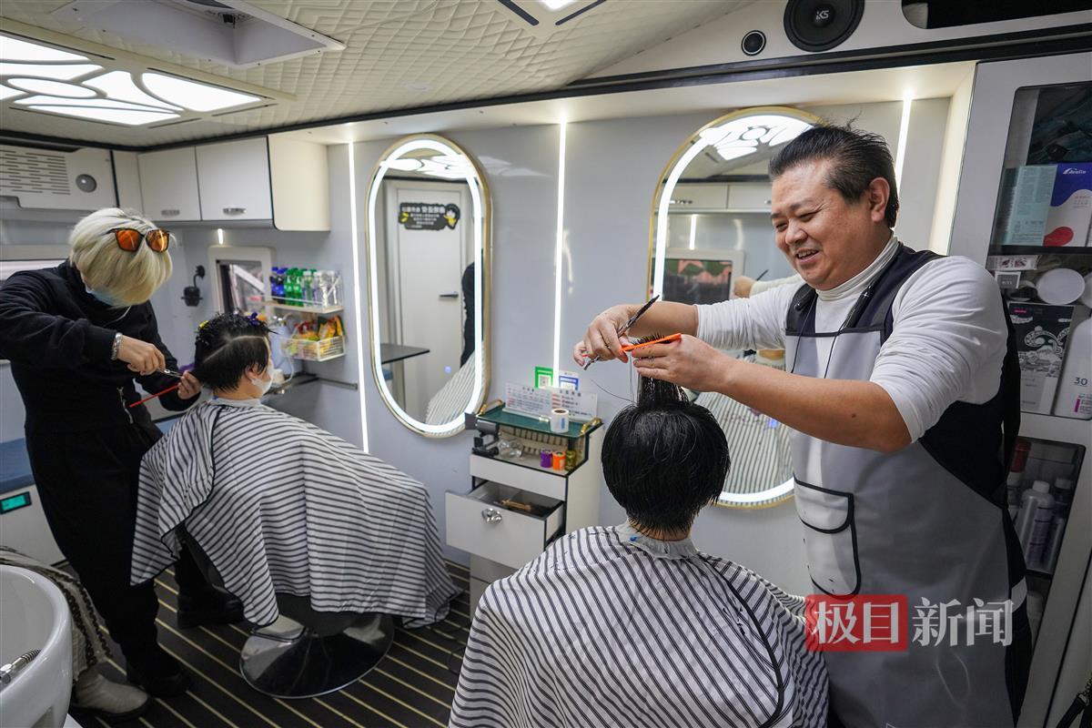 为什么会想到要买下一辆房车做美发店?尹开告诉记者,这两年因为疫情,经过慎重考虑,他把开了几十年的店面转让了出去。“但是生活不能停下暂停键,我想到前几年我去泰国游玩的时候街头有不少移动美发车,有些老客户搬家了,但还想找他做头发,做实体店又不能提供上门服务,就动了这个念头,我把想法和刘飞说了之后,我俩一拍即合,在网上搜索了不少资料后,觉得这事能成。”就这样,今年5月,他找到厂家贷款定制了一辆理发车,花了约40万元。6月,正式提车,尹开的移动美发车正式开始营业。