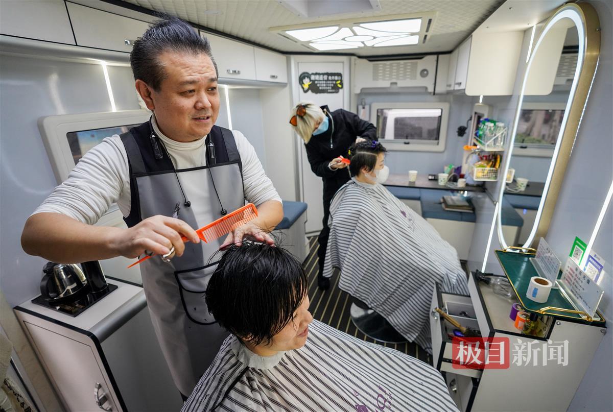 最近,武汉的街头,常有一辆外表“酷炫”的白色房车出没。有人上车待了半个小时之后,竟然换了个发型。