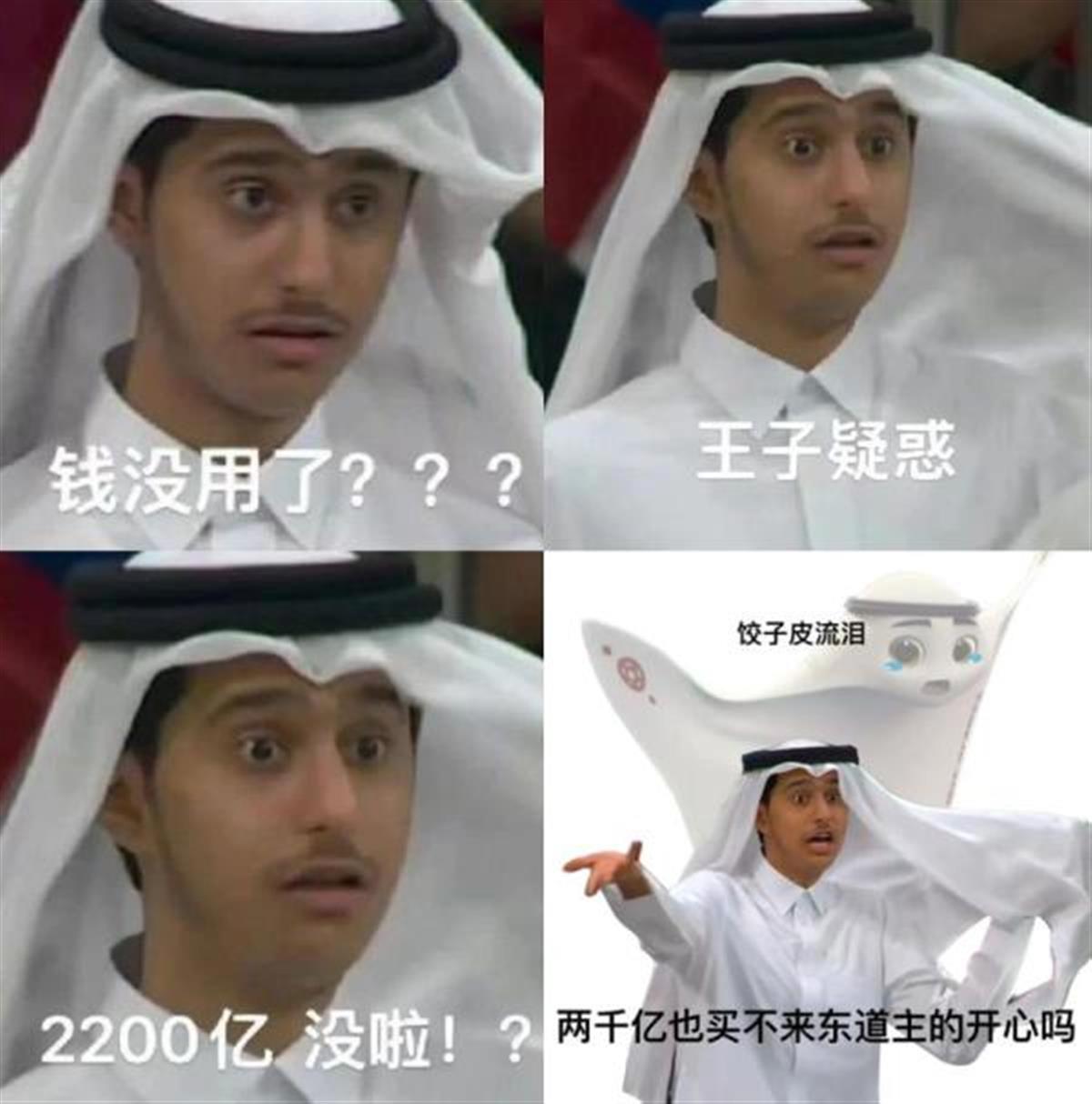 当时,由于卡塔尔队在世界杯揭幕战中表现不怎么好,观众席上的球迷,包括卡塔尔王室成员神情都比较失望,而那位小王子情绪激动地站起来,自言自语地表达不满的样子,像极了在电视机前为球赛着急的你我,再配合上他阿拉伯风格的打扮,竟与世界杯吉祥物“拉伊卜”神奇撞脸!最喜欢“二创”的中国网友,立刻将这一幕做成了各种搞笑视频和表情包,在网络上热传。